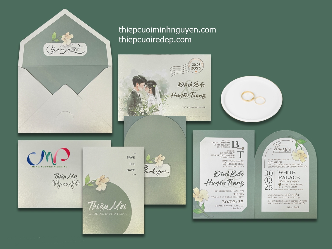 – Bao thư ngang: Khổ TP 17.8cmx12.8cm, in 1 mặt, giấy Ánh KIm mỹ thuật 01M định lượng 200gsm