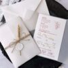 – Tờ thiệp mời: 12cm x 18cm….(option), in 1 mặt – giấy mỹ thuật tiêu chuẩn định lượng 250gsm