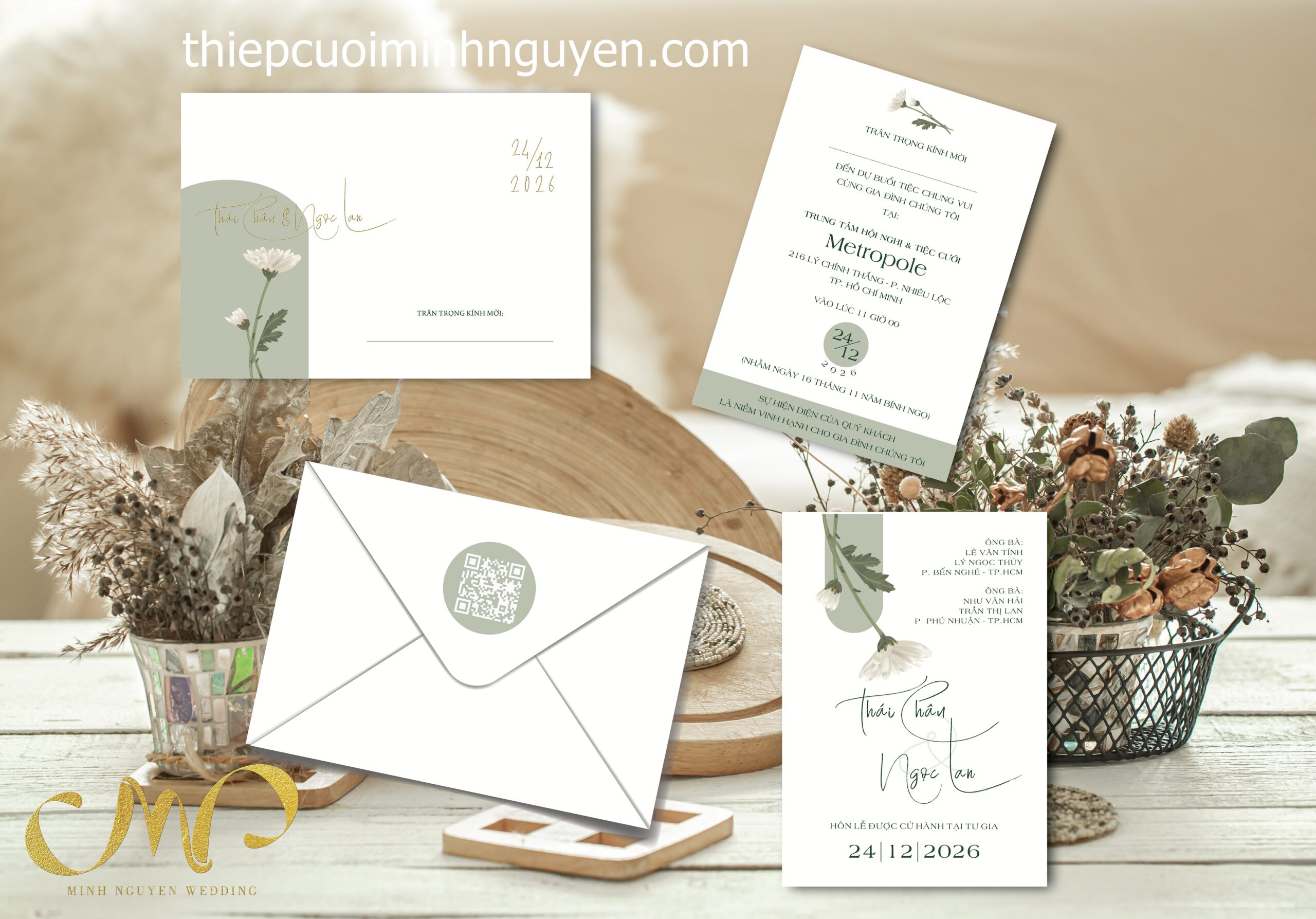 – Tờ thiệp mời: 12cm x 18cm….(option), in 1 mặt – giấy mỹ thuật tiêu chuẩn định lượng 250gsm