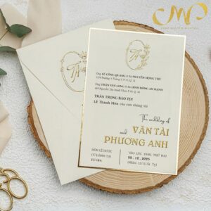 – Tờ thiệp mời: 12cm x 18cm….(option), in 1 mặt – giấy mỹ thuật tiêu chuẩn định lượng 250gsm