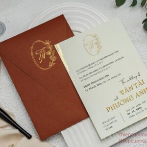 – Tờ thiệp mời: 12cm x 18cm….(option), in 1 mặt – giấy mỹ thuật tiêu chuẩn định lượng 250gsm
