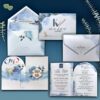 – Tờ thiệp mời: 12cm x 18cm….(option), in 1 mặt – giấy mỹ thuật tiêu chuẩn định lượng 250gsm